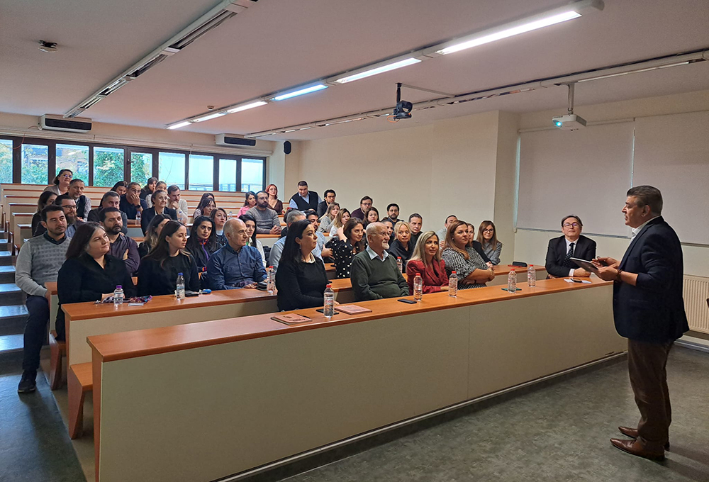 A panel talk titled “Songs for a Lifetime, Lives That Turn into Songs”, exploring the intersections of music and literature, to which the IKU Dean of the Faculty of Science and Letters and a faculty member of the Department of Turkish Language and Literature Prof. Dr. Ömür Ceylan attended as a speaker, was held on Tuesday, November 22, 2023, at the Istanbul Kültür University (İKÜ) Vocational School. The event alongside IKU Rector Prof. Dr. Fadime Üney Yüksektepe and IKU Vice Rector Prof. Dr. Gülce Öğrüç Ildız, was attended by various IKU faculty members. Prof. Dr. Ceylan offered in-depth analysis of the influence of music and literature on life. The event, which emphasized the profound influence of music and literature on the human soul, left the audience not only informed but also inspired