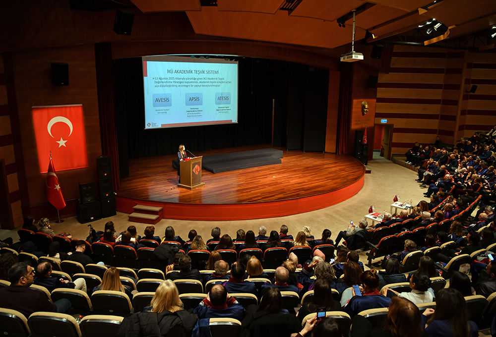 Rektörümüz Prof. Dr. Fadime Üney Yüksektepe ise, "Bugün burada İKÜ ailesi olarak çok anlamlı bir buluşma için bir aradayız. Bugünkü törenimizi yalnızca başarıların ödüllendirildiği bir organizasyon olarak değil; aynı zamanda emeğin, bilginin, azmin ve ortak değerlerimizin görünür hale geldiği bir paylaşım anı olarak görüyorum.  Bugün ev sahipliği yapacağımız bu buluşma için son derece heyecanlıyım. Törene geçmeden önce Rektör Yardımcımız Prof. Dr. Gülce Öğrüç Ildız, bu sürecin metodolojisini kısa bir sunumla sizlerle paylaşacak. Bu nedenle sayısal ayrıntılara girmeyeceğim. Ben daha çok bugünün bizim için ne ifade ettiğine değinmek istiyorum.