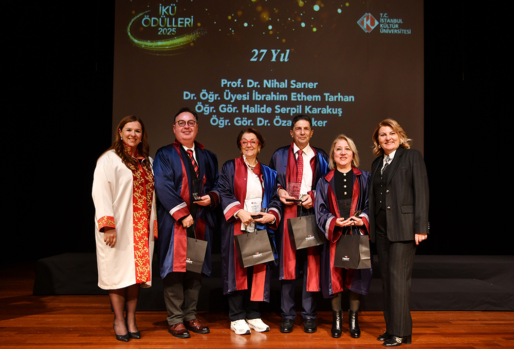 İKÜ Ödülleri 2025 ve ATESİS’25 – Akademik Teşvik Töreni, 10 Şubat 2026 Salı günü saat 14.00'te Bakırköy yerleşkesi Ataköy binasındaki Akıngüç Oditoryumu ve Sanat Merkezi'nde gerçekleştirildi. Törende, üniversitemizde tam zamanlı görev yapan akademik-idari personel ile birimlerimizin; bilimsel araştırma, eğitim-öğretim, kalite geliştirme, uluslararası iş birliği, kamu-üniversite-sanayi iş birliği, lisansüstü tez alanındaki üstün başarıları ve hizmet alanlarındaki katkıları ödüllendirildi.